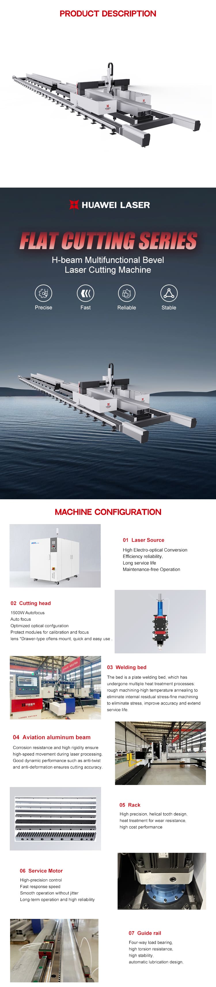 Huawei Lazer, struktur polad, şüa və ağır işləmə üçün ultra yüksək enerji verən metal polad emal üçün 3D CNC H-Beam lazer kəsmə maşını 12000w təqdim edir. İnkişaf etmiş Ar-Ge, genişmiqyaslı istehsal və etibarlı bir səhm, zavod-birbaşa qiymət və sürətli toplu çatdırılma təmin edirik.
